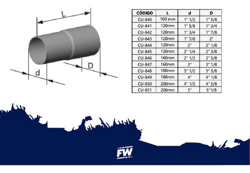 1" 1/2 a Ø1" 5/8 - 100mm