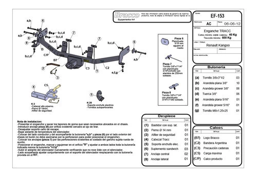 incluye burlonería, anclajes, manual de instalación y un cabezal, para perno o bocha a elección.