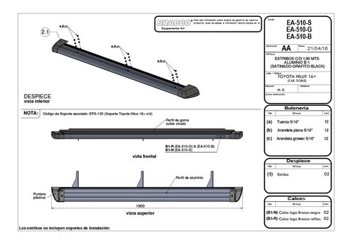 Fácil colocación, incluye instructivo, anclajes y bulonería completa.